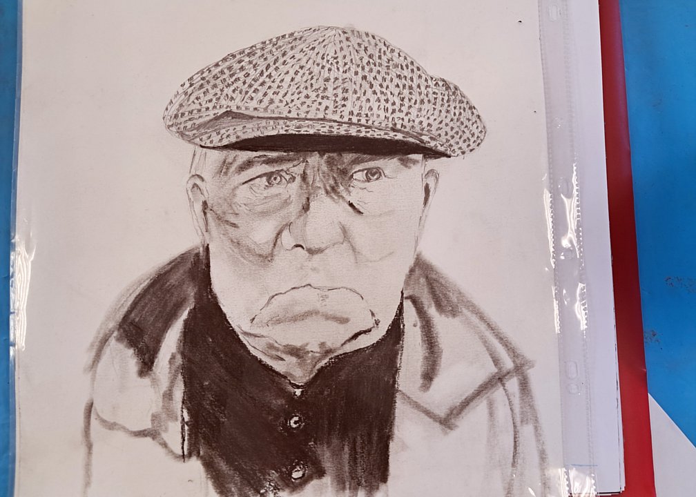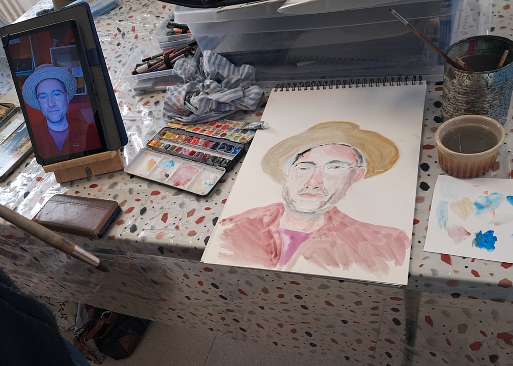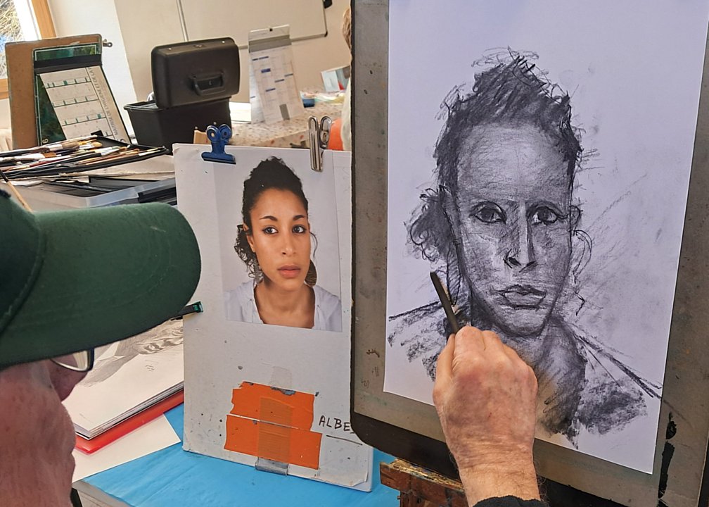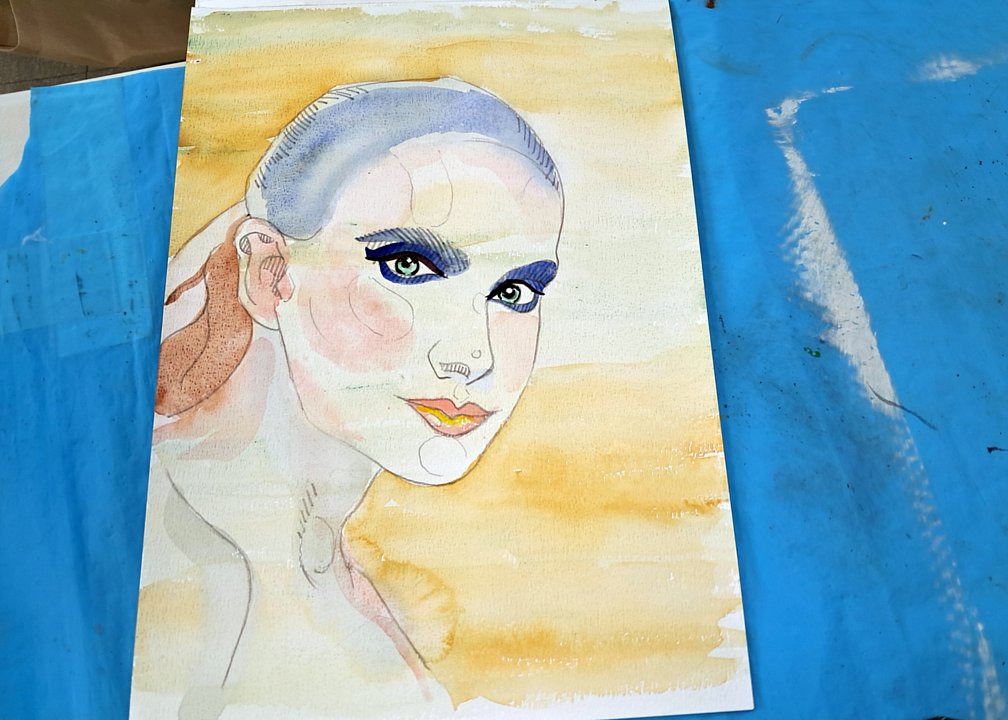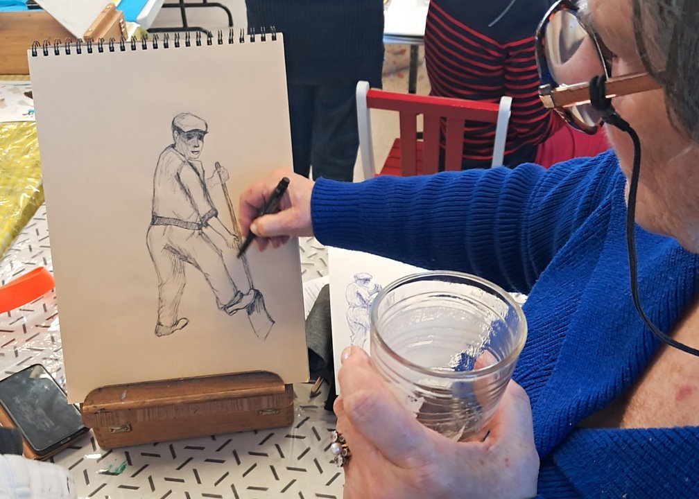 Toujours les même diversités, de sujet avec bien sûr des têtes connues, mais aussi des thèmes plus personnels, et de techniques (dont une esquisse à la craie blanche ; l’heure de la visite fait que les œuvres du jour sont entamées, mais non finies)