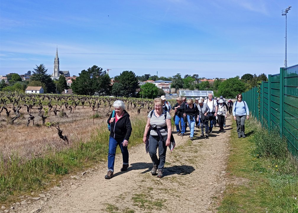 Sous le soleil, le parcours emprunte les chemins agricoles entre les parcelles de vignes ; en cette période, les rangées de ceps bien alignées prennent une jolie couleur vert tendre. Il devient plus ombragé lors des passages dans les petits bois aux chemins creux qui nous apportent un peu de fraîcheur. Il traverse aussi quelques hameaux où les nouvelles constructions côtoient les anciennes maisons de pierre. La fin du parcours se déroule sur les traces de l’ancienne voie ferrée de Nantes à Cholet le long du parc des tanneries.