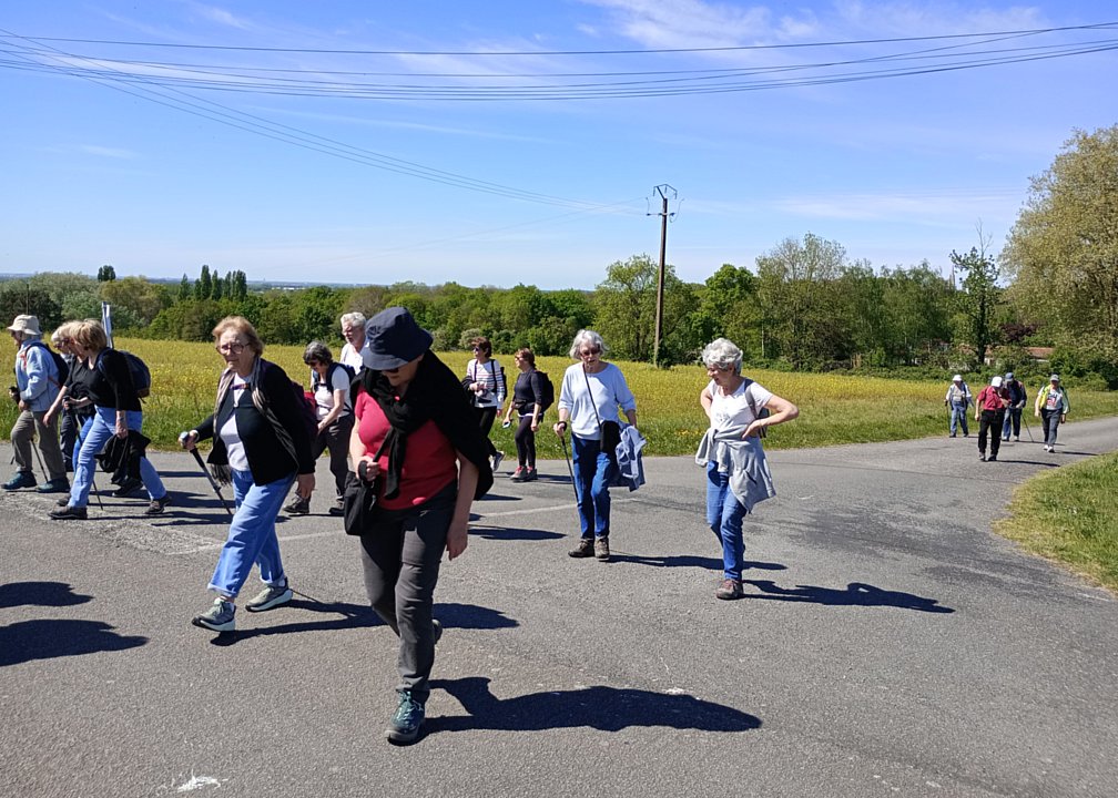 Nous étions 35 ce vendredi 10 avril 2026 pour cette randonnée qui consiste en une boucle à partir du parking du collège à travers vignes, campagne vallonnée et bois. Certains d’entre nous qui avaient déjà fait cette randonnée sous la pluie ont eu le plaisir de la redécouvrir sous un soleil printanier.