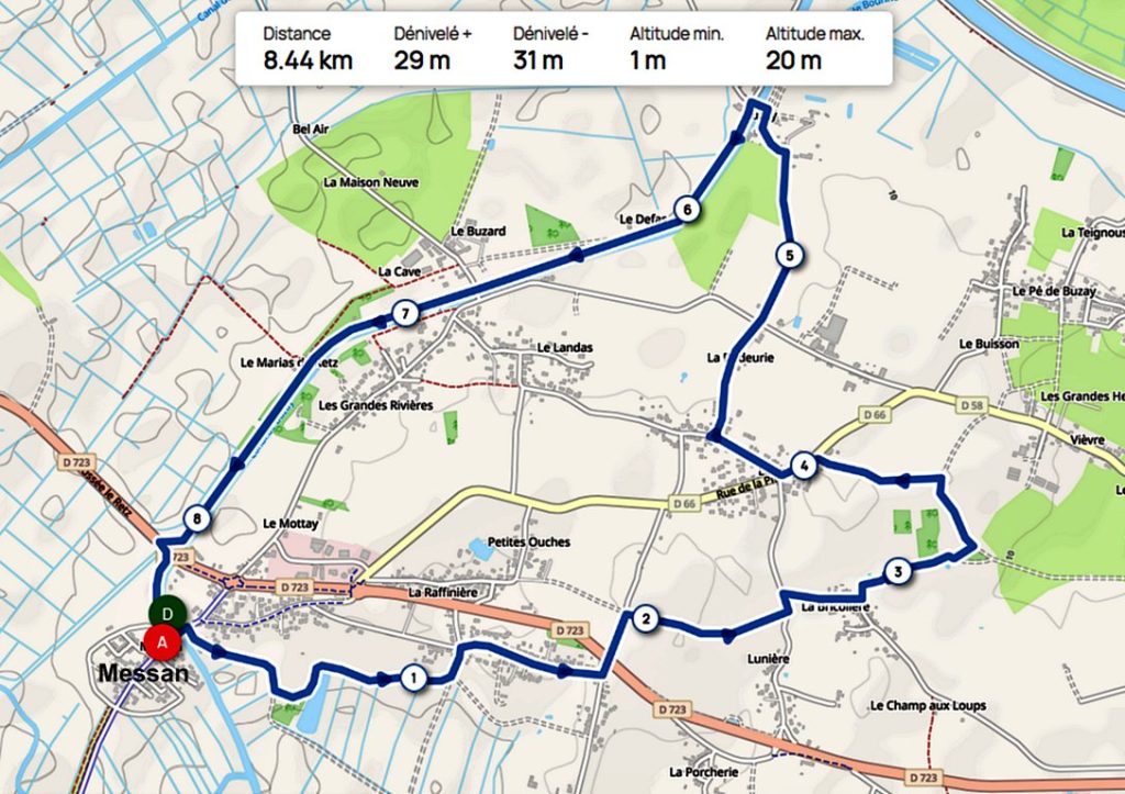 Cette treizième sortie du groupe des 8km ce vendredi 10 avril 2026 a consisté en une boucle « triangulaire » dans la partie nord-est du hameau de Messan qui constitue la partie nord de la commune de Rouans.